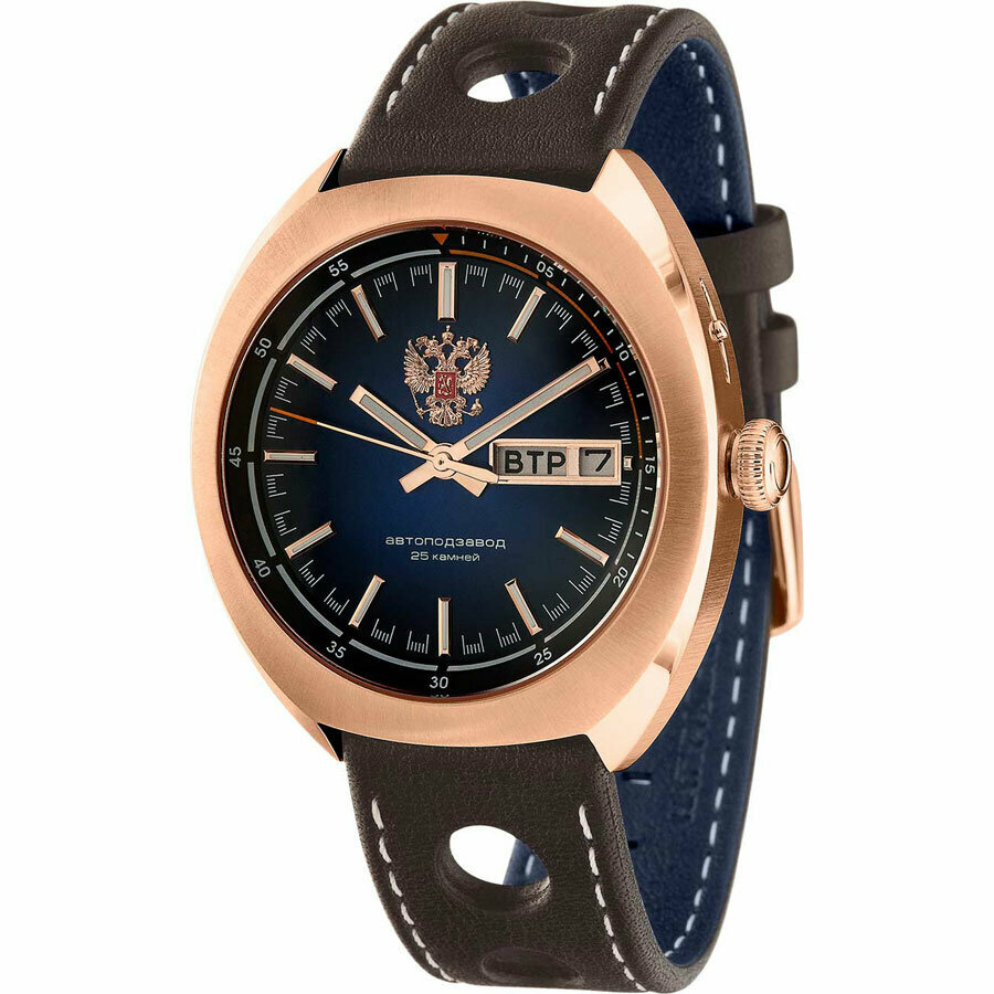 Лучшие цены. Лимитированная серия. Механические часы с автоподзаводом. Запас хода на 31 час. Водостойкость WR 100. Центральные часовая, минутная и секундная стрелки. Индикация даты и дня недели. Стрелки и метки с люминесцентным покрытием. Циферблат с часовыми индексами в виде штрихов. Корпус выполнен из нержавеющей стали с IP покрытием. Диаметр корпуса 43 мм, толщина 14 мм. Устойчивое к возникновению мелких механических повреждений минеральное стекло с сапфировым покрытием. Кожаный ремешок коричневого цвета. Магазины в вашем городе.