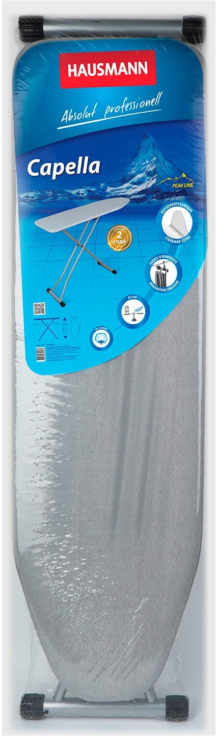 Лучшие цены. Гладильная доска Hausmann Capella компактная и легкая. Рабочий стол из паропропускающей стальной сетки, с чехлом из 100% хлопка. Благодаря складной конструкции доска компактно складывается и не занимает много места. В комплекте имеется подвес для компактного хранения. Магазины в вашем городе.