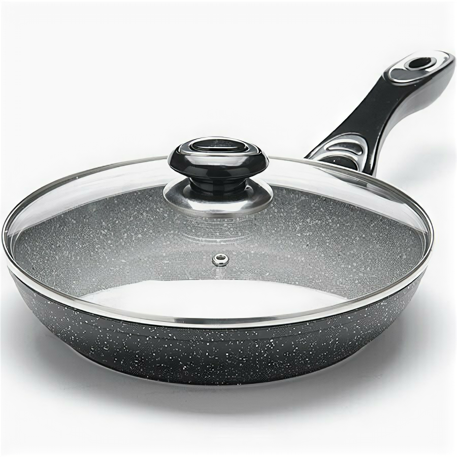 Лучшие цены. Сковорода с мраморной крошкой MAYER&BOCH выполнена из качественного литого алюминия и снабжена антипригарным покрытием особой прочности. Покрытие антипригарное жаропрочное, защищает сковороду от царапин, является экологически чистым и полностью безопасным, без вредных соединений и примесей. За счет того, что пища не пригорает и не пристает к покрытию сковороды, ее легко и быстро мыть. Прочное индукционное дно сковороды устойчиво к повреждениям и деформации. Магазины в вашем городе.