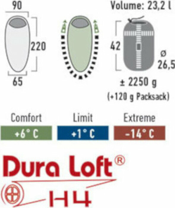 | Оснащение | капюшон / возможность состегивания / внутренний карман / отделение под подушку / защита от закусывания молнии / тепловой валик молнии / петли для сушки / компрессионный мешок |