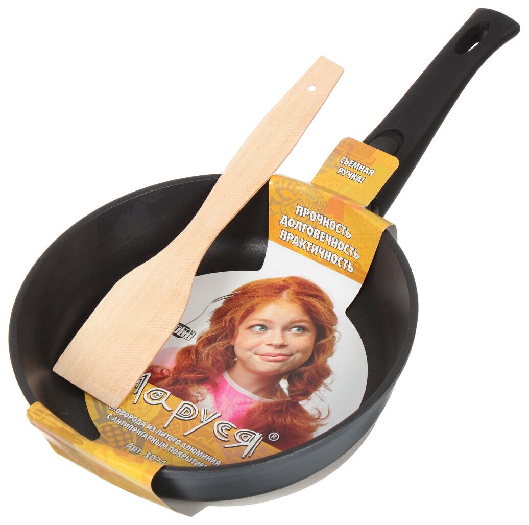 Сковородка Сковорода Маруся Стандарт 3024 24 см со съемной ручкой (литая антипригарная) черная