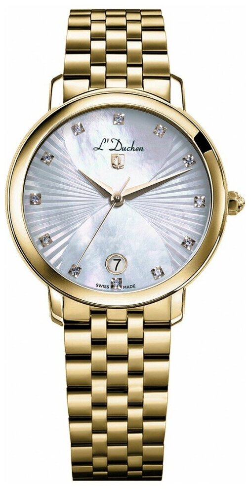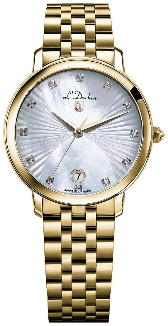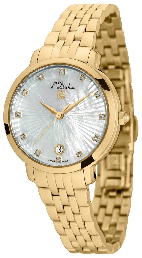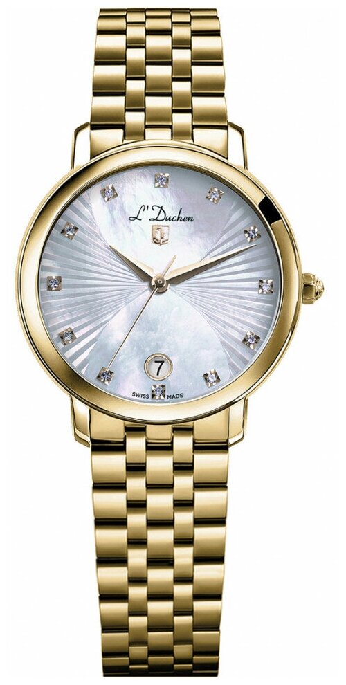 Лучшие цены. Часы наручные L`Duchen D 801.20.33. Дизайн часов коллекции Eternity дарит возможность наблюдать вечное движение времени, воплощенное в циферблате с мягкими волнообразным рисунком. Вставки из натурального перламутра придают невообразимую глубину и объем. Изящные маркеры в виде кристаллов фианита. Апертура даты на 7 часах и полированные грани стрелок завершают образ элегантного аксессуара. Удобство обеспечивает рельефный ремешок из нержавеющей высоколегированной стали. Магазины в вашем городе.