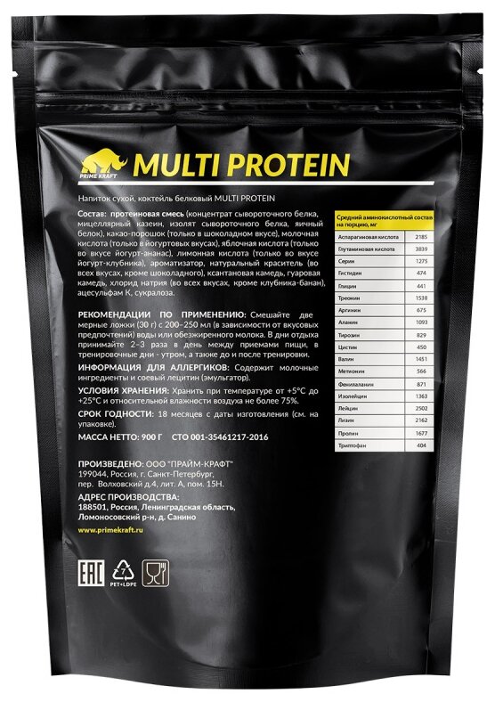 Протеин Prime Kraft MULTI PROTEIN (клубника банан), 900 гр.