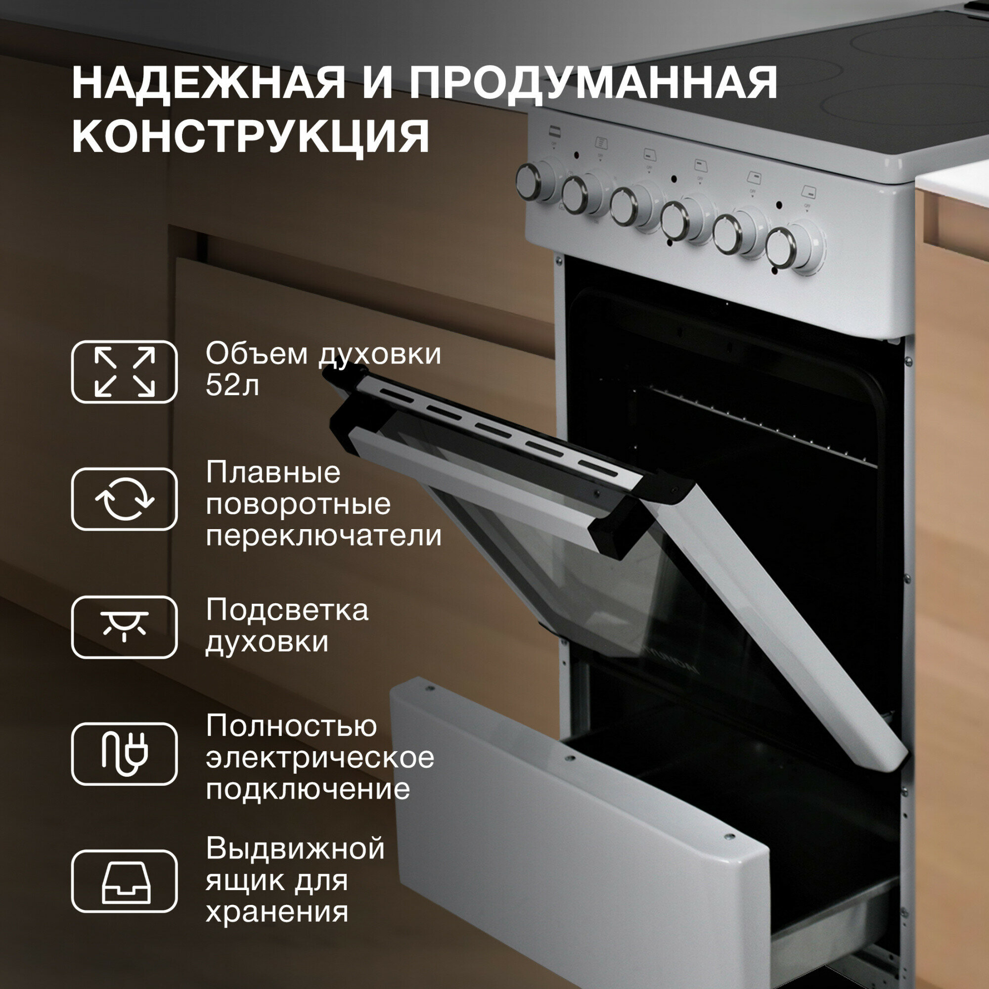 | Управление конфорками | поворотные переключатели |