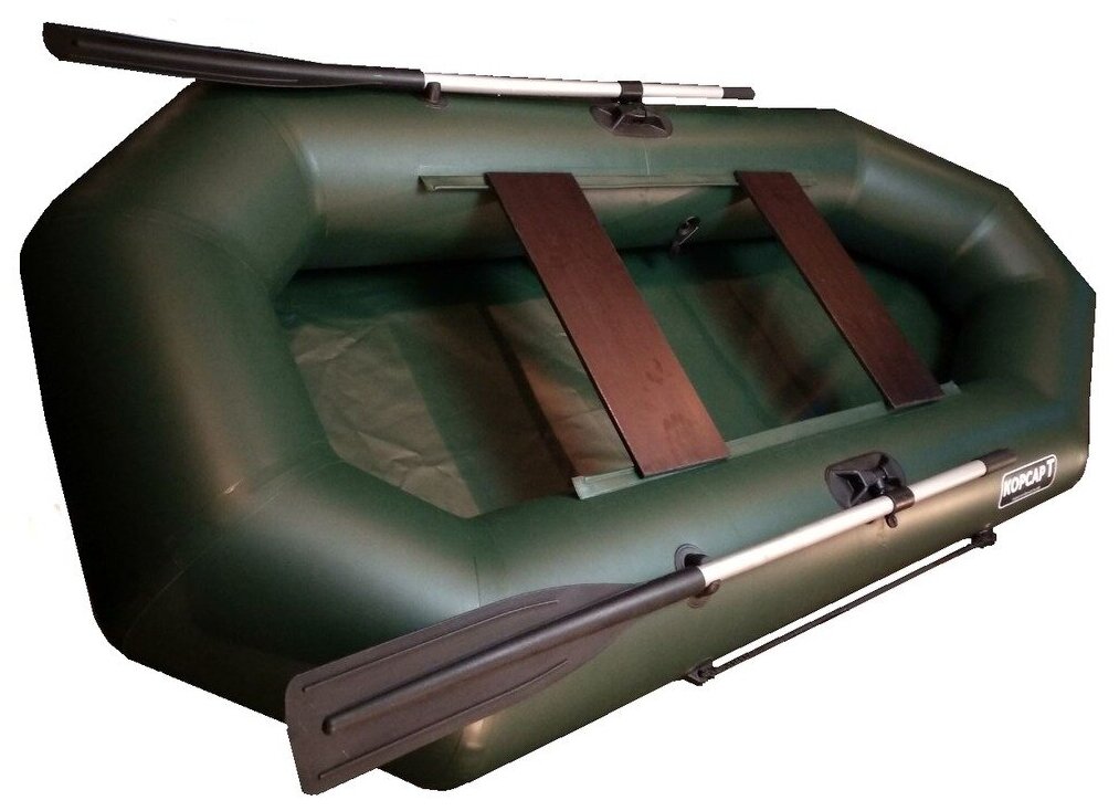 Лучшие цены. Лодка ПВХ надувная, 2-х местная, Корсар 240. Изготовлена из пятислойной ПВХ ткани зеленого цвета, плотностью 750 г/м. кв. Длина лодки 240 см. Ширина лодки 123 см. Диаметр балона 33 см. Вес комплекта 12 кг. Грузоподьемность 220 кг. Пассажировместимость 2 человека. 2 независимых воздушных отсека. На лодке установлены поворотные уключины - 2 шт, шнур леера с шайбами по бортам - 2 шт, шайба леера на носу лодки - 1 шт, держатель весла - 2 шт, держатель сидения - 4 шт, клапан - 2 шт. Магазины в вашем городе.