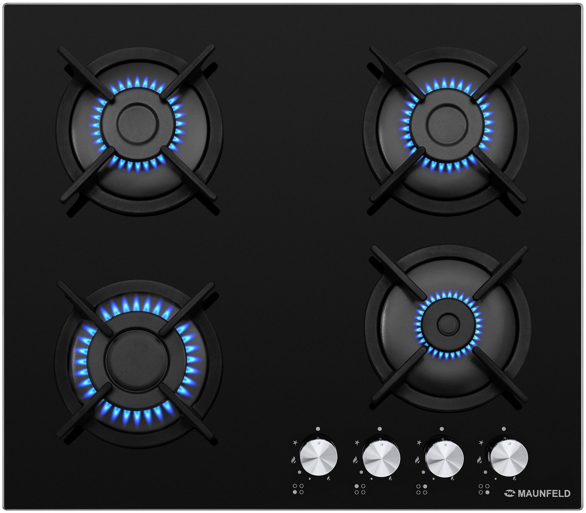 Лучшие цены. Газовая варочная панель Maunfeld EGHG.64.1CB/G Особенности: Рабочий стол: закаленное стекло 4 газовые итальянские конфорки SABAF Мощность конфорок: 2600, 1700, 1700, 1000 Вт Тяжелые цельнометаллические полнотелые ручки управления Автоматический электроподжиг под ручкой управления Газ-контроль Чугунные решетки Жиклеры Sourdillion (Франция) Возможность работы от магистрального газа и газа в балоне (тип G30) Толщина стекла 8 мм Характеристики: Габариты (ШхГ): 590х515 мм Габариты ниши для встраивания (ШхГ). Магазины в вашем городе.