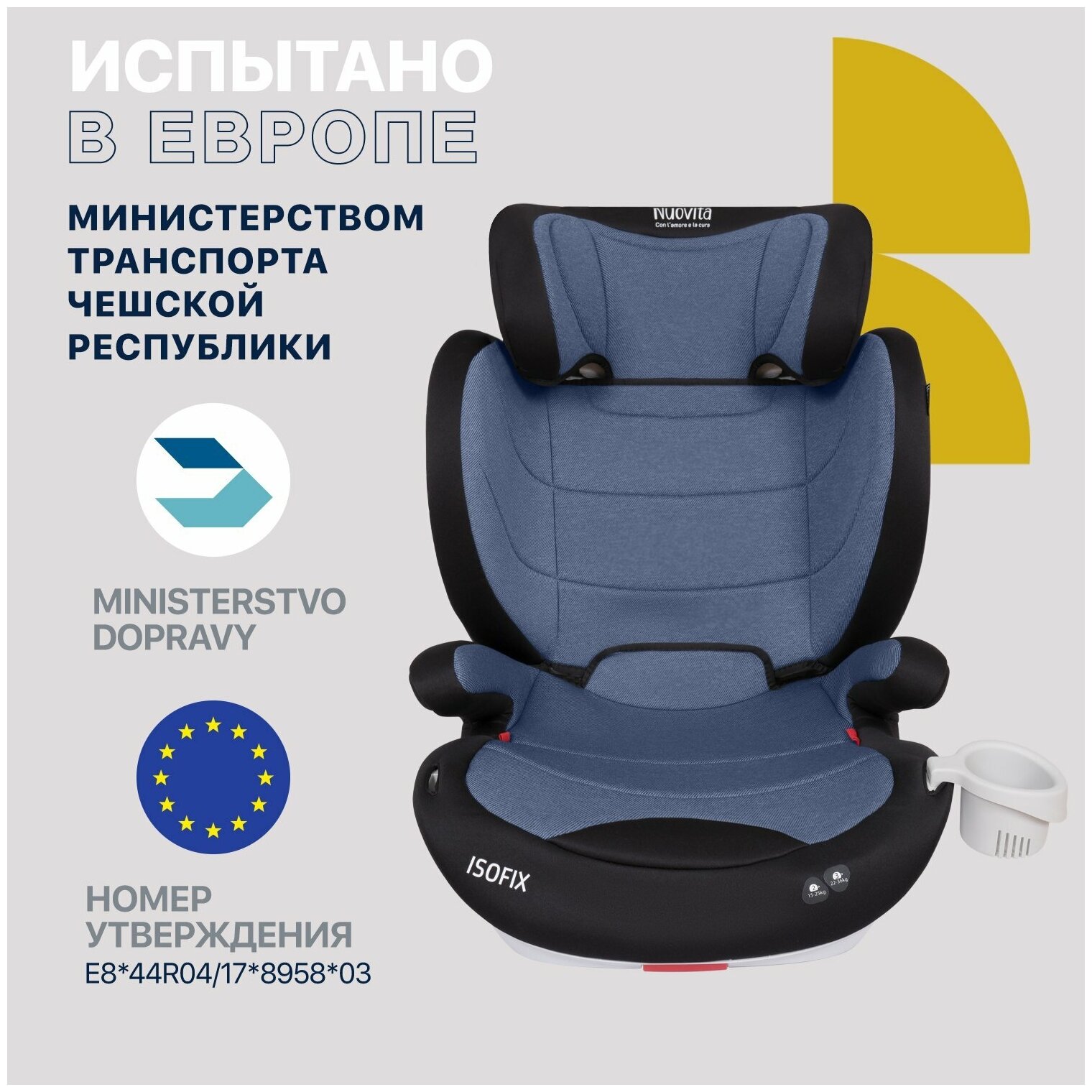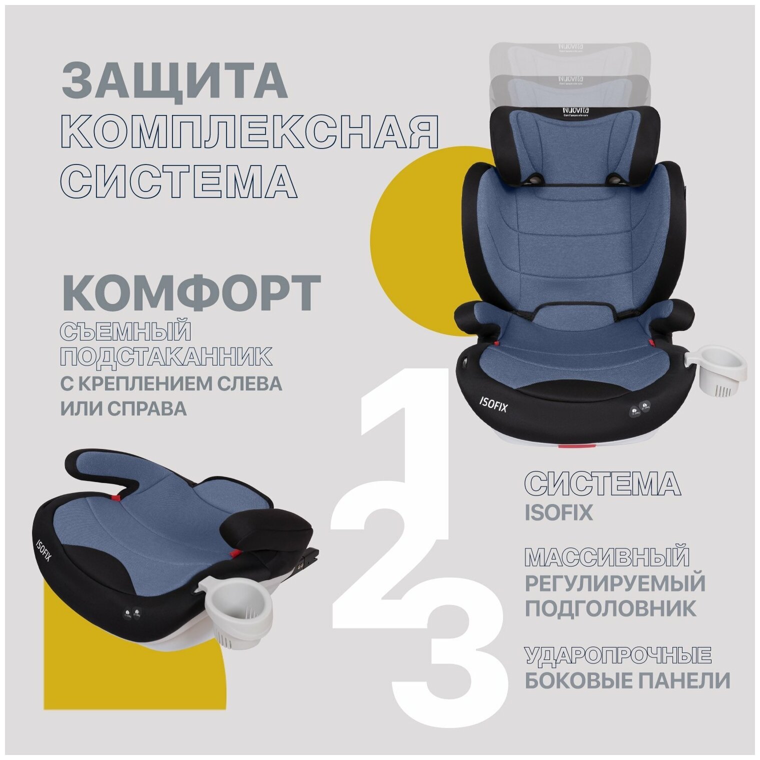 Автокресло детское с креплением Isofix Nuovita Maczione N23i-1, группа 2/3 от 3,5 до12 лет, весом от 15 до 36 кг(Grigio chiaro/Светло-серый)