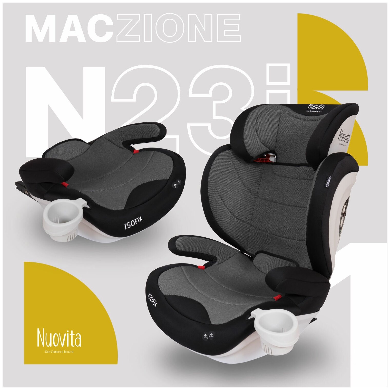 Автокресло детское с креплением Isofix Nuovita Maczione N23i-1, группа 2/3 от 3,5 до12 лет, весом от 15 до 36 кг/ трансформируется в бустер (Grigio chiaro/Светло-серый)
