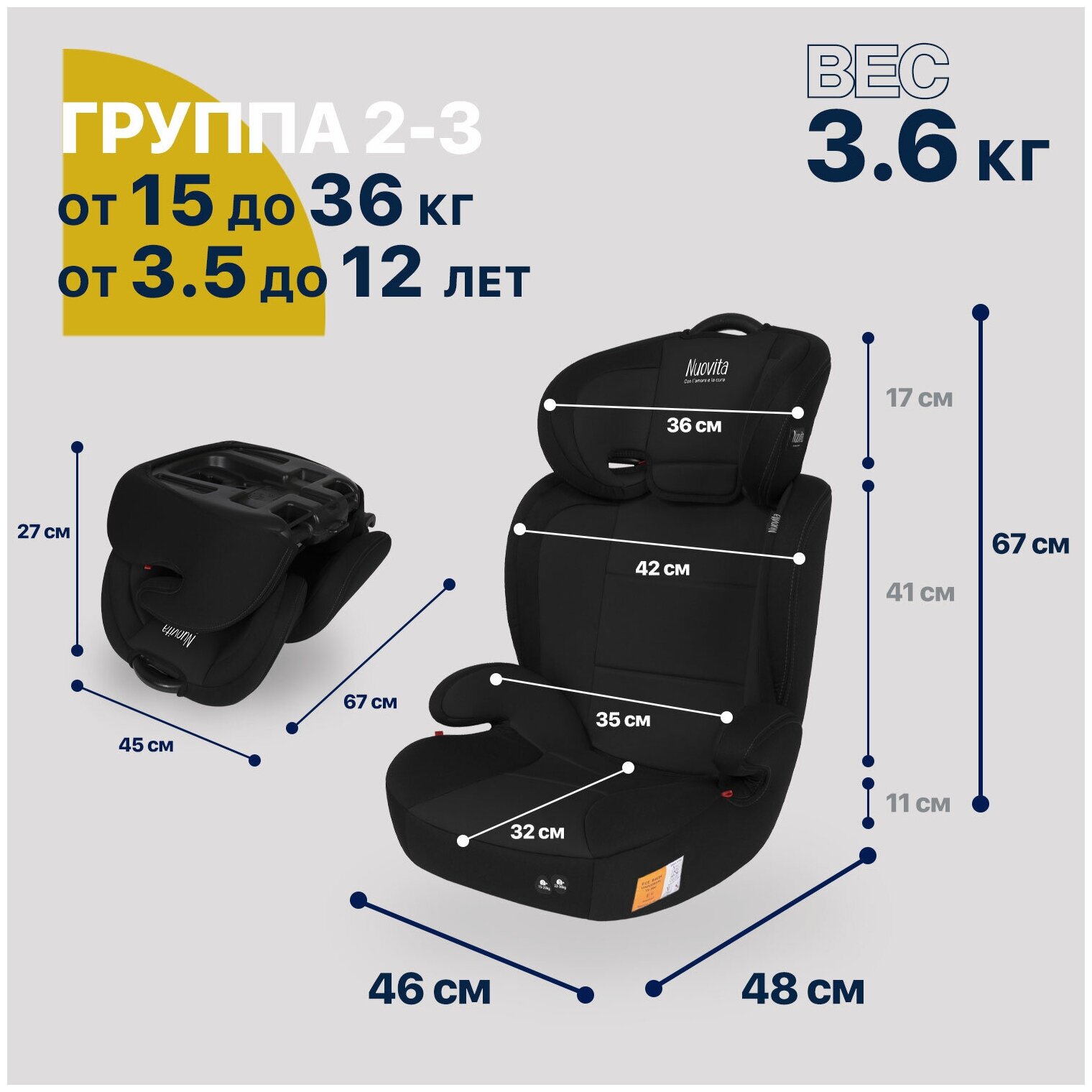 Лучшие цены. Инженеры итальянской марки Nuovita разработали автокресло Maczione N23-1 группы 2/3 с учетом интересов родителей, которые предпочитают приобретать качественные товары и затем долго их использовать, экономя средства, время и место для хранения. Данная модель рассчитана на детей в возрасте от 3,5 до 12 лет весом от 15 до 36 кг (при перевозке детей третьей возрастной группы устройство трансформируется в бустер). Магазины в вашем городе.