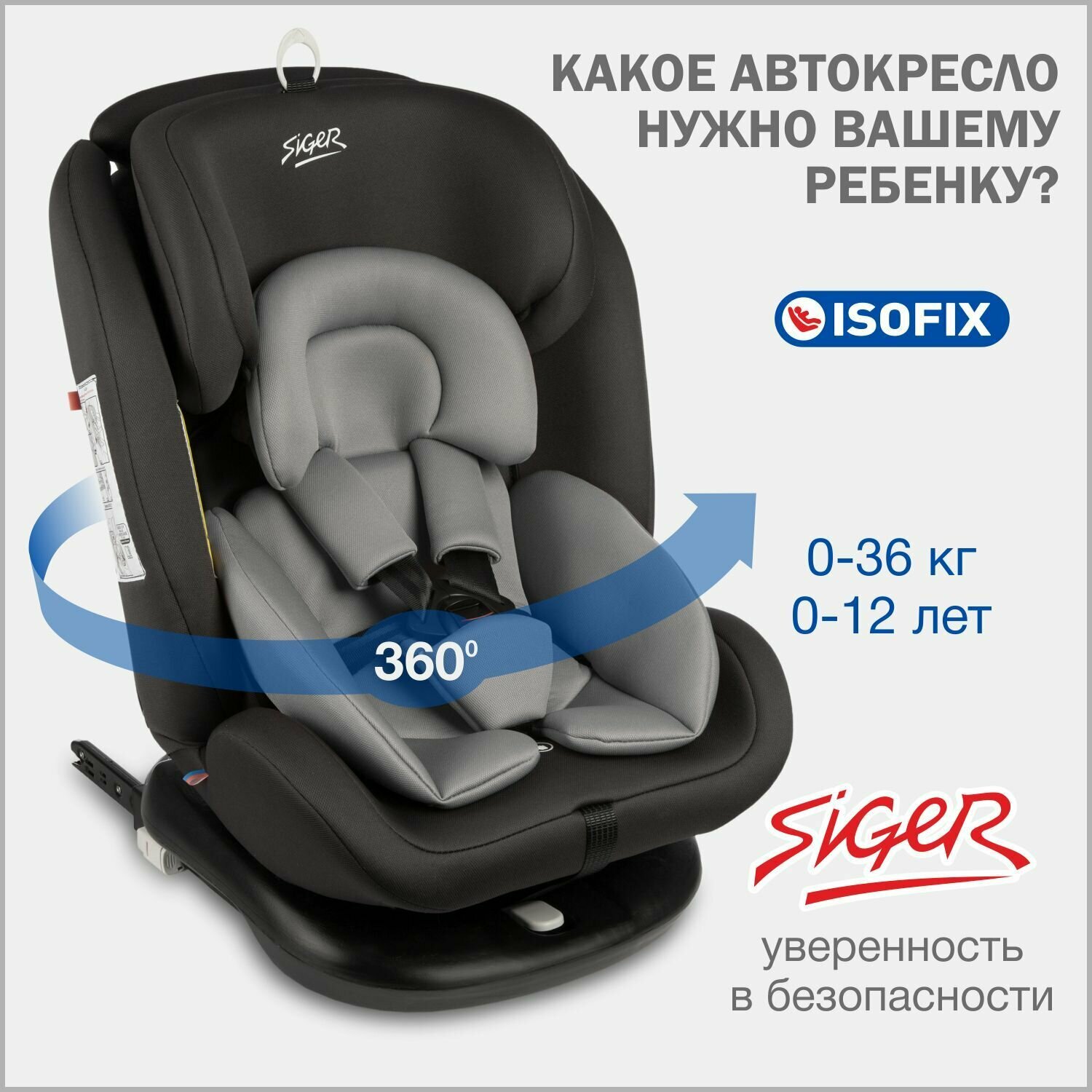 Автокресло детское поворотное с рождения до 12 лет / Isofix / 0+/1/2/3/до 36 кг 0-36кг / 0-12лет, Siger Престиж , оникс 10 399 ₽ Подробнее