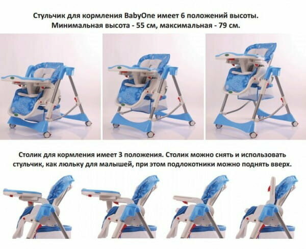 Лучшие цены. BabyOne является уникальным в своем роде стульчиком для кормления. За много лет использования подобных стульчиков мы учли все преимущества и недостатки и воплотили в BabyOne все самое лучшее. Стульчик имеет яркий дизайн и, безусловно, идеально впишется в любой интерьер, даря родителям и малышу исключительный комфорт и удобство. Три регулируемых положения спинки и подножки, включая горизонтальное, делает возможным использование стула даже для новорожденных. Размеры сиденья 33х87 см. Магазины в вашем городе.