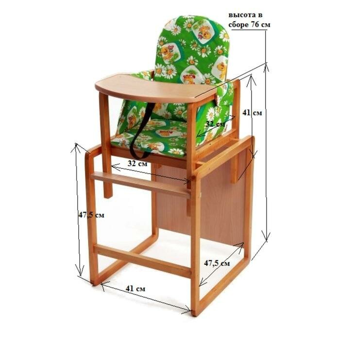 Лучшие цены. Данная модель легко трансформируется в стол и стул. Изделия рассчитано на детей от 6-ти месяцев. Собирается просто и быстро с помощью саморезов. Основные характеристики: Количество положений спинки: 1; Количество положений стула по высоте: 2; Ремень безопасности: страховочная лента; Чехол: съёмный с возможностью стирки; Подлокотник: мягкий – единый с чехлом; Дополнительный стол для игр и рисования: большой; Размеры стульчика: 50 х 50 х 100 см; Размеры столика малого: 41 х 24 см. Магазины в вашем городе.