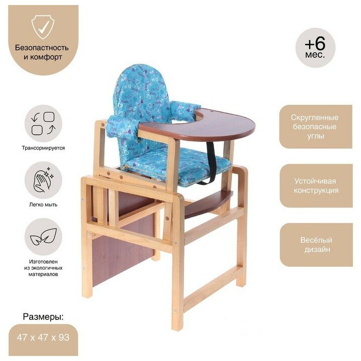 Лучшие цены. Стульчик для кормления «Ксения», трансформер, цвет голубой Длина, мм|470; Глубина, мм|470; Высота, мм|930; Вес, кг|9.6; Maксимальная нагрузка, кг|15; Материал корпуса|Дерево; Регулируемая спинка|Нет; Материал|Текстиль; Материал|Дерево; Материал|ЛДСП; Из натурального дерева|Да; Съёмный чехол|Да; Особенность|Для кормления; Особенность|Трансформер; Съёмный столик|Да; Размер посадочного места, мм|270 х 290. Магазины в вашем городе.