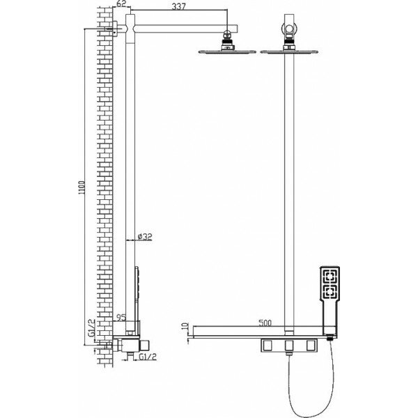 | Комплектация | лейка / верхний душ / смеситель / стойка / штанга / душевой шланг / крепление лейки / полка |