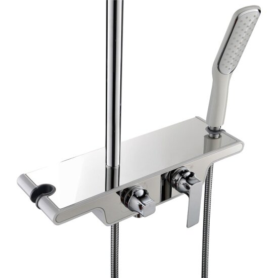 | Комплектация | лейка / верхний душ / смеситель / стойка / штанга / душевой шланг / крепление лейки / полка |