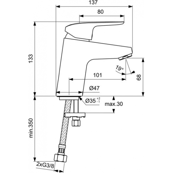 Смес/умыв CERAFLEX однор лит/изл, IDEAL STANDARD B1710AA (1 шт.)