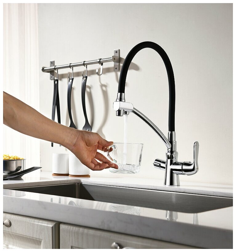 Смеситель для кухни lemark Комфорт с гибким изливом с подключением к фильтру питьевой воды хром