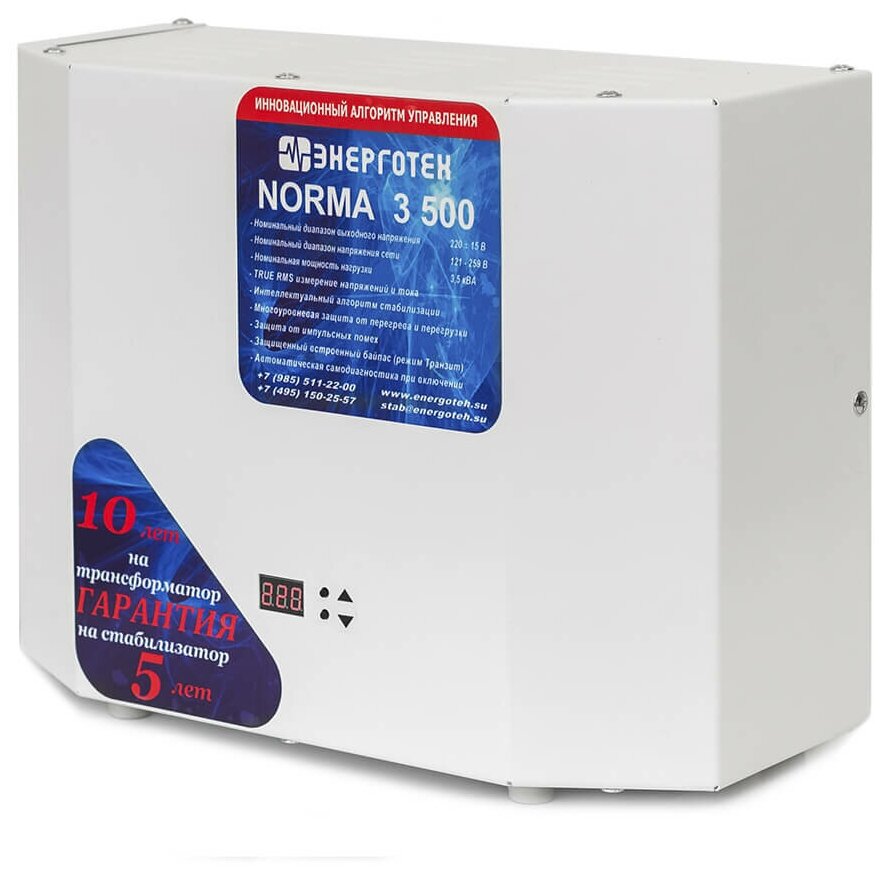 Стабилизатор напряжения энерготех NORMA 3500 ±15 В. 121-259 В. время реакции 20 мс