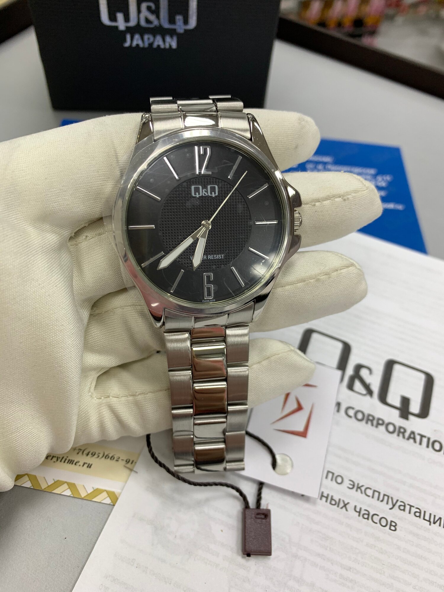 Лучшие цены. Мужские японские наручные часы Q&Q QA06-222 [QA06 J222Y]. Кварцевый механизм в высокой точностью +/-20 сек в месяц. Прочное, устойчивое к царапинам, минеральное стекло обеспечит защиту часов от повреждений. Водонепроницаемость 30WR (3 Бар) защитит Ваши часы от брызг и дождя, но плавать в них нельзя. Ударопрочный корпус часов сделан из нержавеющей стали с высокими антикоррозийными свойствами. Стальной браслет. Источник питания - батарейка. Способ отображения времени - Аналоговый (стрелки). Магазины в вашем городе.