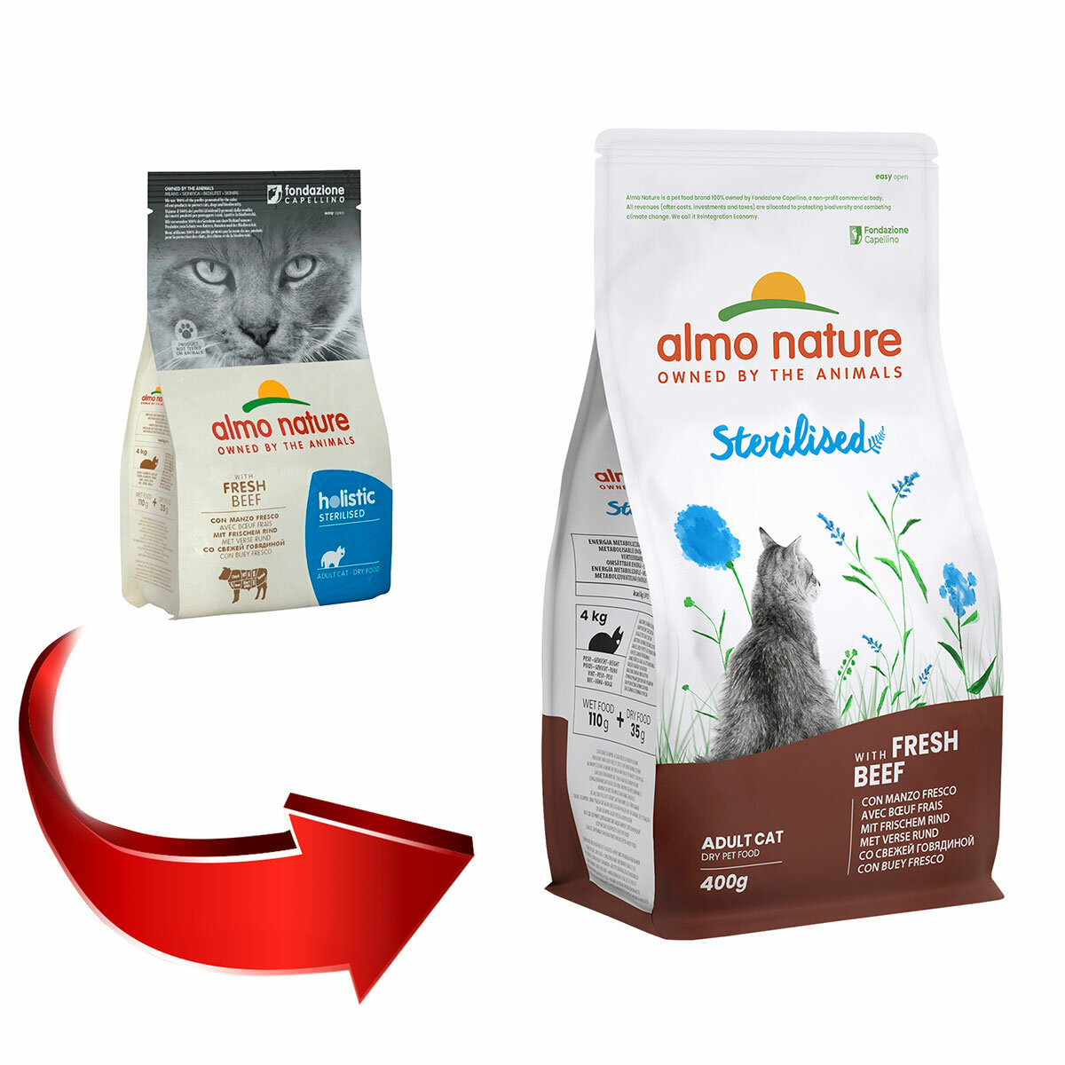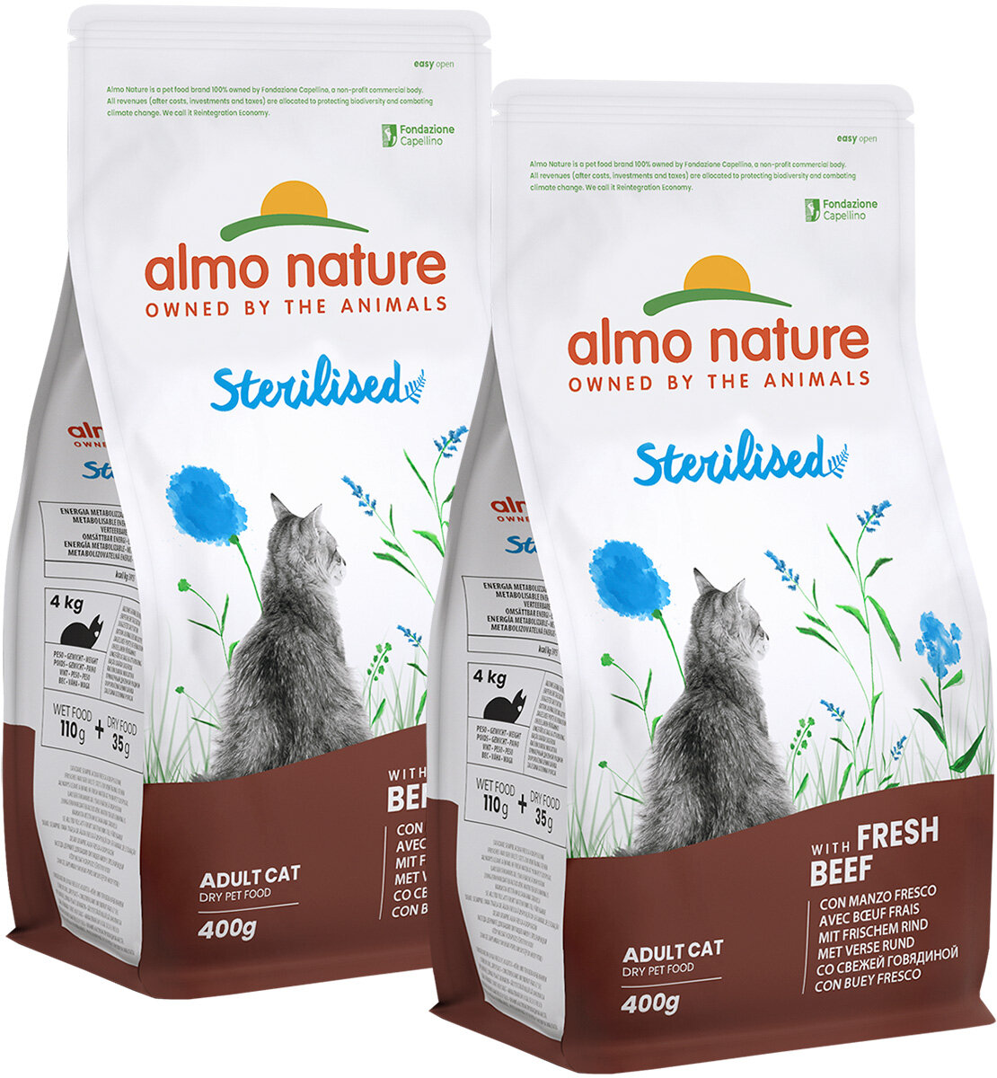 Корм для кошек ALMO NATURE ADULT CAT STERILISED BEEF & RICE для взрослых кастрированных котов и стерилизованных кошек с говядиной и рисом (0,4 + 0,4 кг)