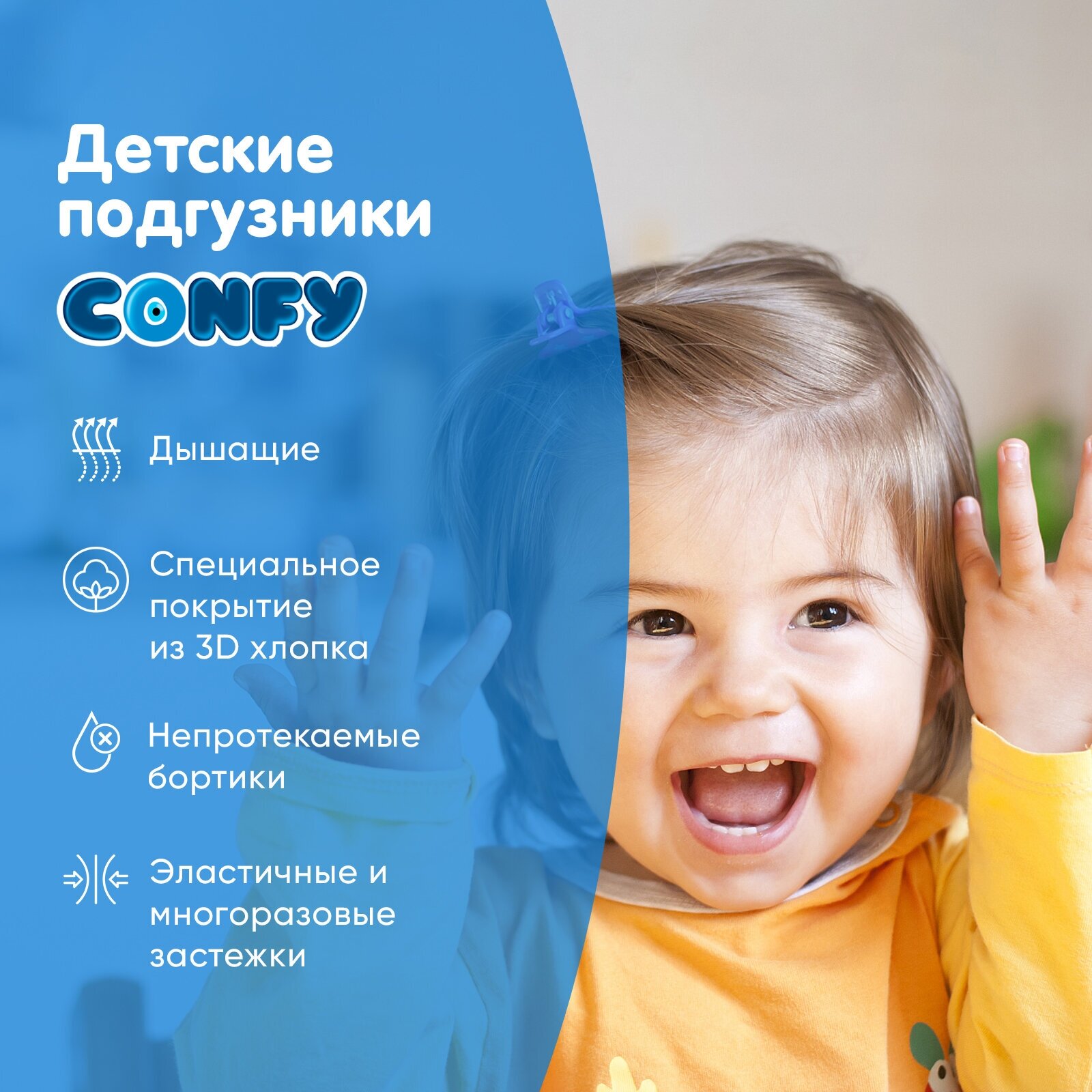 Лучшие цены. Подгузники Confy Maxi (размер 4) созданы с заботой для самых маленьких мальчиков и девочек уже с первых месяцев жизни. Специальная хлопковая 3D поверхность подгузников бережно относится к нежной коже новорожденного, позволяя ей дышать и не доставляет дискомфорта. Эксклюзивная технология Equality Technology позволяет жидкости равномерно распределяться, быстро впитываться и сохранять сухость длительное время. Магазины в вашем городе.