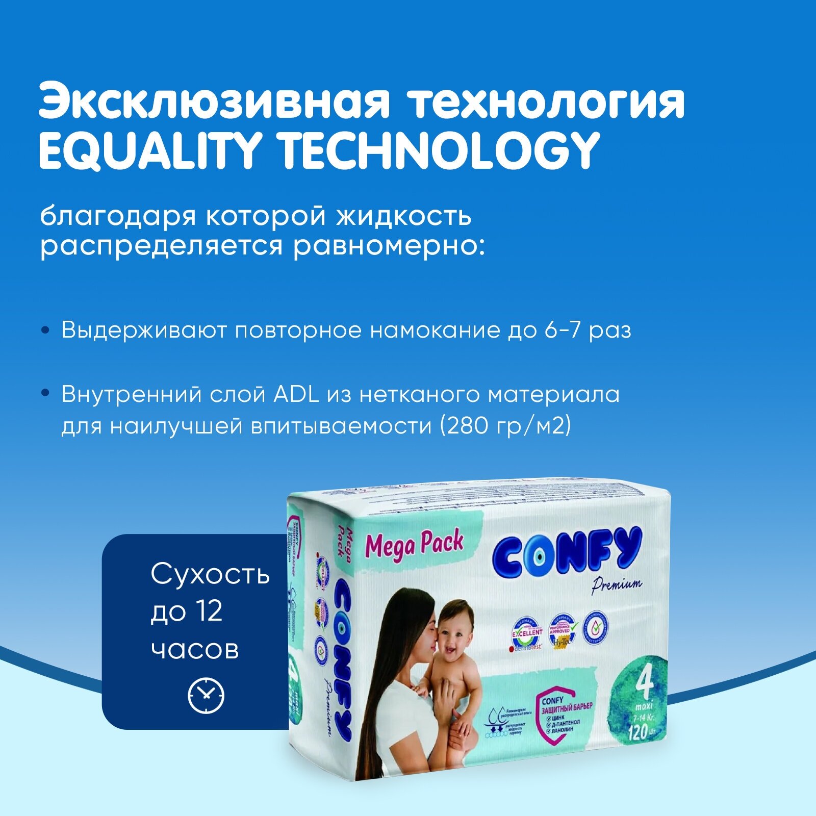 Подгузники детские CONFY Premium MAXI MEGA размер 4, 120 шт