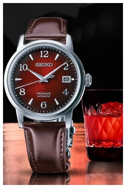Лучшие цены. Мужские механические наручные часы с автоподзаводом и возможностью ручного завода Seiko SRPE41J1 The Negroni коллекции Presage Cocktail Time. Дизайн серии Cocktail Time разработан совместно с известным Японским барменом Шинобу Ишигаки, цвет циферблата данной модели соответствует цвету одного из его коктейлей. Калибр механизма — 4R35. Запас хода более 40-ка часов. 21 600 полуколебаний в час. Количество камней - 23. На данной модели отображается дата. Магазины в вашем городе.