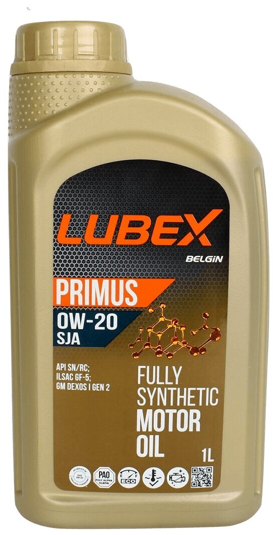 Лучшие цены. Моторное масло LUBEX PRIMUS SJA 0W-20 синтетическое 1 лПолностью синтетическое мало для последних поколений азиатских и американских автомобилей, особенно для малокубатурных турбированных двигателей с непосредственным впрыском топлива. Полностью синтетическое маловязкое энергосберегающее моторное масло с особым пакетом антифрикционных присадок и сниженной щелочностью. Выдающаяся технология, повышающая производительность двигателя и экономию топлива за счет снижения трения при любых температурах. Магазины в вашем городе.