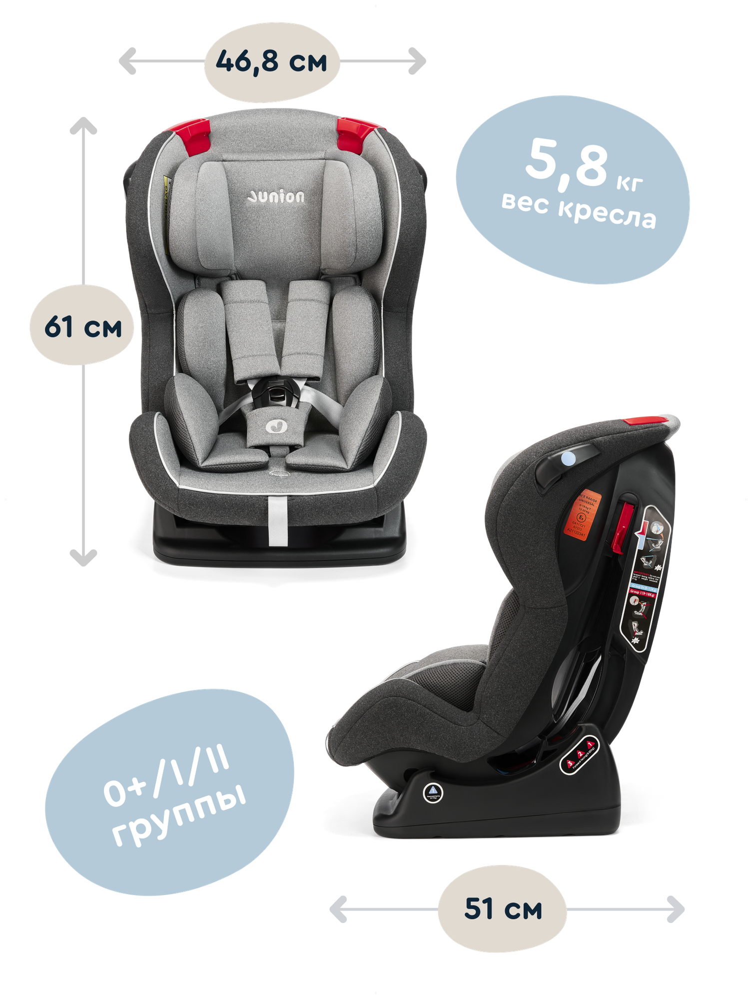Детские автокресла Автокресло JUNION Zumi группа 0+/1/2 (0-25 кг), тёмно-серый