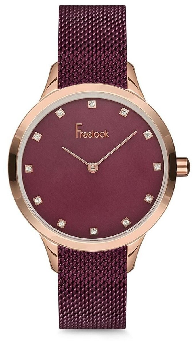 Лучшие цены. Женские кварцевые часы. Точный японский механизм Seiko TMI VJ20. Центральные часовая и минутная стрелки. Бордовый циферблат украшен кристаллами Swarovski в местах часовых меток. Корпус выполнен из полированной нержавеющей стали 316L с IP покрытием цвета розового золота. Диаметр корпуса составляет 34 мм. Стальной браслет с бордовым покрытием шириной 14 мм выполнен в технике миланского плетения. Прочное минеральное стекло устойчивое к мелким механическим повреждениям. Водостойкость WR 30 (брызги). Магазины в вашем городе.