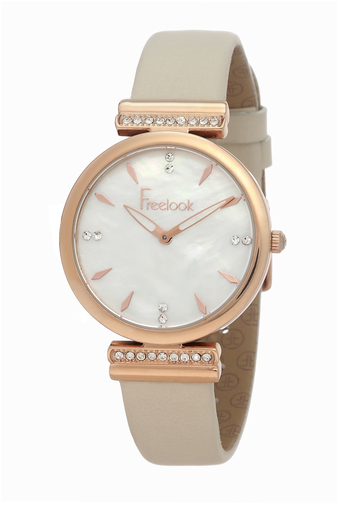 Лучшие цены. Женские модные наручные часы Freelook Belle FL.1.10067-4 Корпус: металл, цвет розовый PVD, размер Ø32 мм, водозащита 5 ATM Ремешок: натуральная кожа, цвет бежевый, размер 14 мм Белый циферблат, стекло минеральное Механизм: кварцевый аналоговый, калибр Seiko VJ20. Магазины в вашем городе.