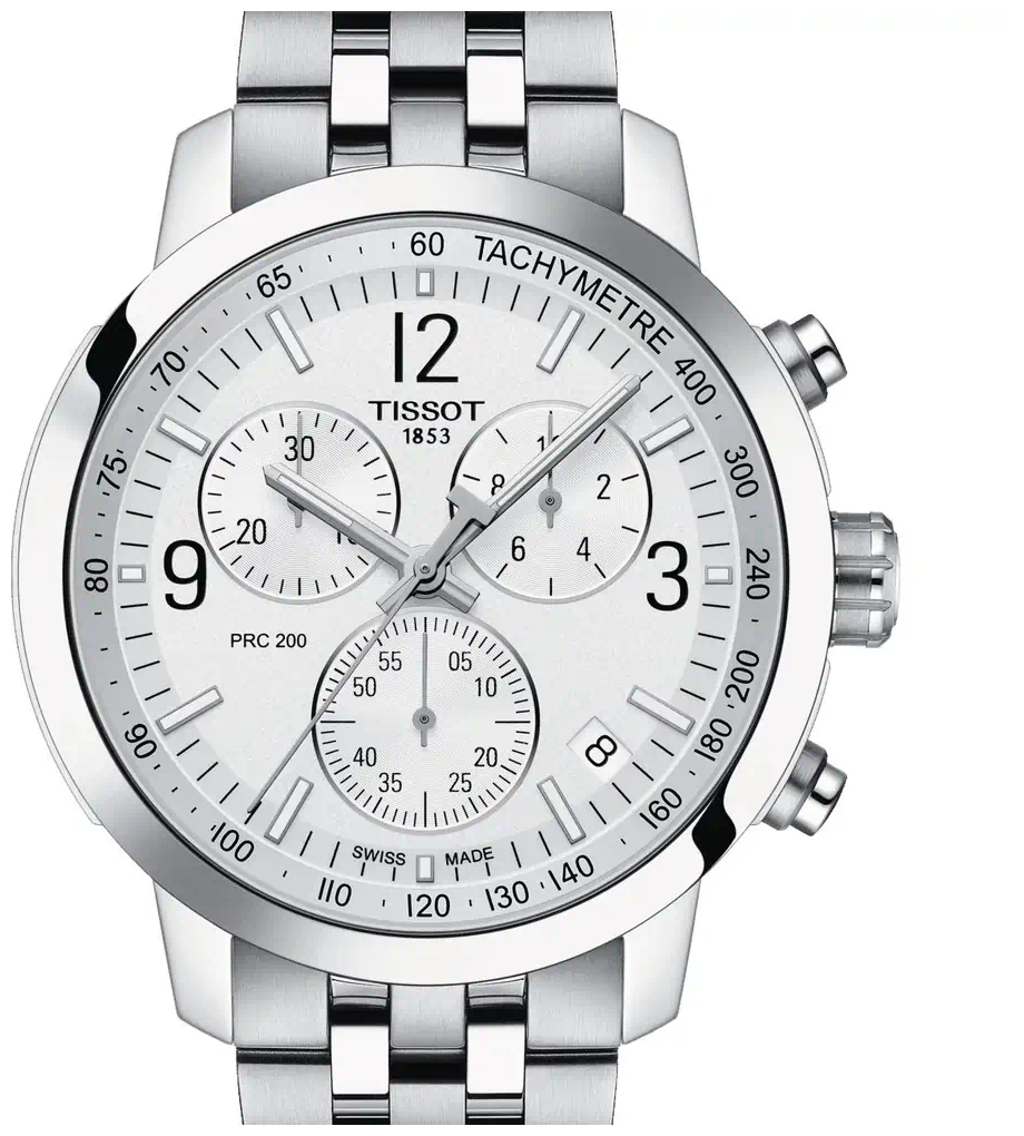 Швейцарские кварцевые часы Tissot PRC 200 Chronograph T114.417.11.037.00 на стальном браслете, с водозащитой 20 бар и международной гарантией от производителя