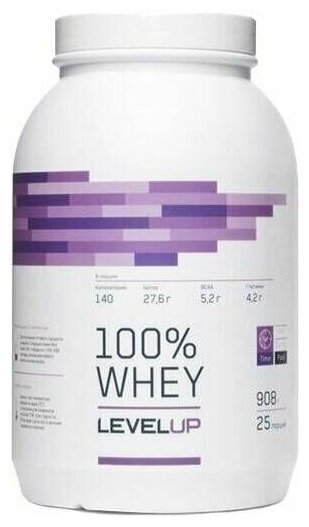 Лучшие цены. Описание LEVEL UP 100% WHEY 100% Whey - концентрат сывороточного белка. Богат глютамином и BCAA. отлично усваивается и быстро увеличивает уровень аминокислот в крови. Отдичный вкус, превосходная смешиваемость и минимальное количество добавок - отличительные черты 100% Whey. Продукт не является лекарственным средством. Противопоказания: Индивидуальная непереносимость ингредиентов продукта. Не рекомендуется употреблять лицам до 18 лет, беременным и кормящим женщинам. Магазины в вашем городе.