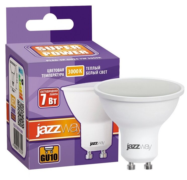 Лампа светодиодная jazzway Pled Power 1033550, GU10, SP, 7 Вт, 3000 К