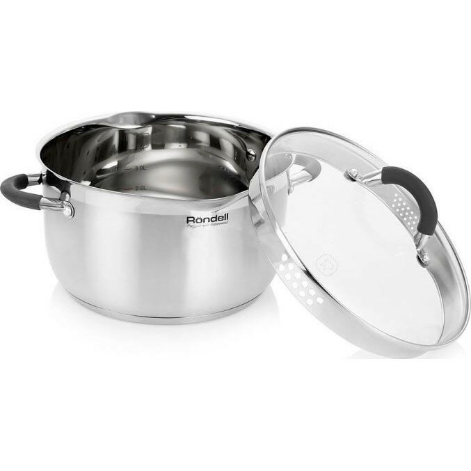 Кастрюля rondell flamme 5,7л 24см нерж.сталь стеклянная крышка