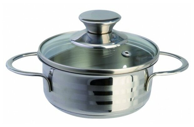 Лучшие цены. Кастрюля из нержавеющей стали со стеклянной крышкой. Твердая стальная поверхность прочна и устойчива к деформации. Нержавеющая сталь не вступает в реакцию с кислотами и щелочами даже при очень высоких температурах. Можно мыть в посудомоечной машине. Подходит для любых видов плит. - Объем, л: 0,7. - Состав: кастрюля со стеклянной крышкой. - Толщина стенок, полировка: 0,5 комбинированное полирование. - Толщина и характеристика дна: 3-х многослойное термораспределительное дно. Магазины в вашем городе.