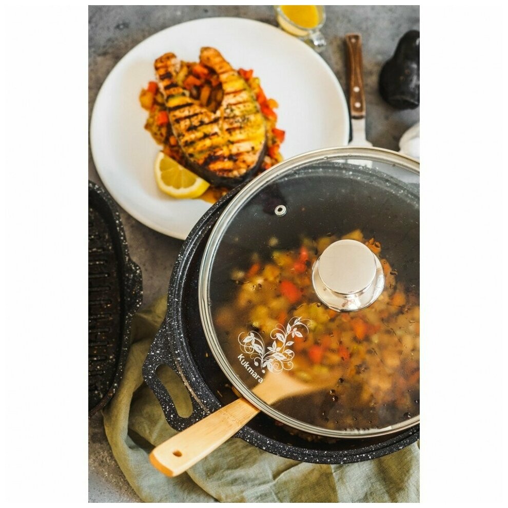 Кастрюля KUKMARA, 4 л, стеклянная крышка, антипригарное покрытие, цвет тёмный мрамор