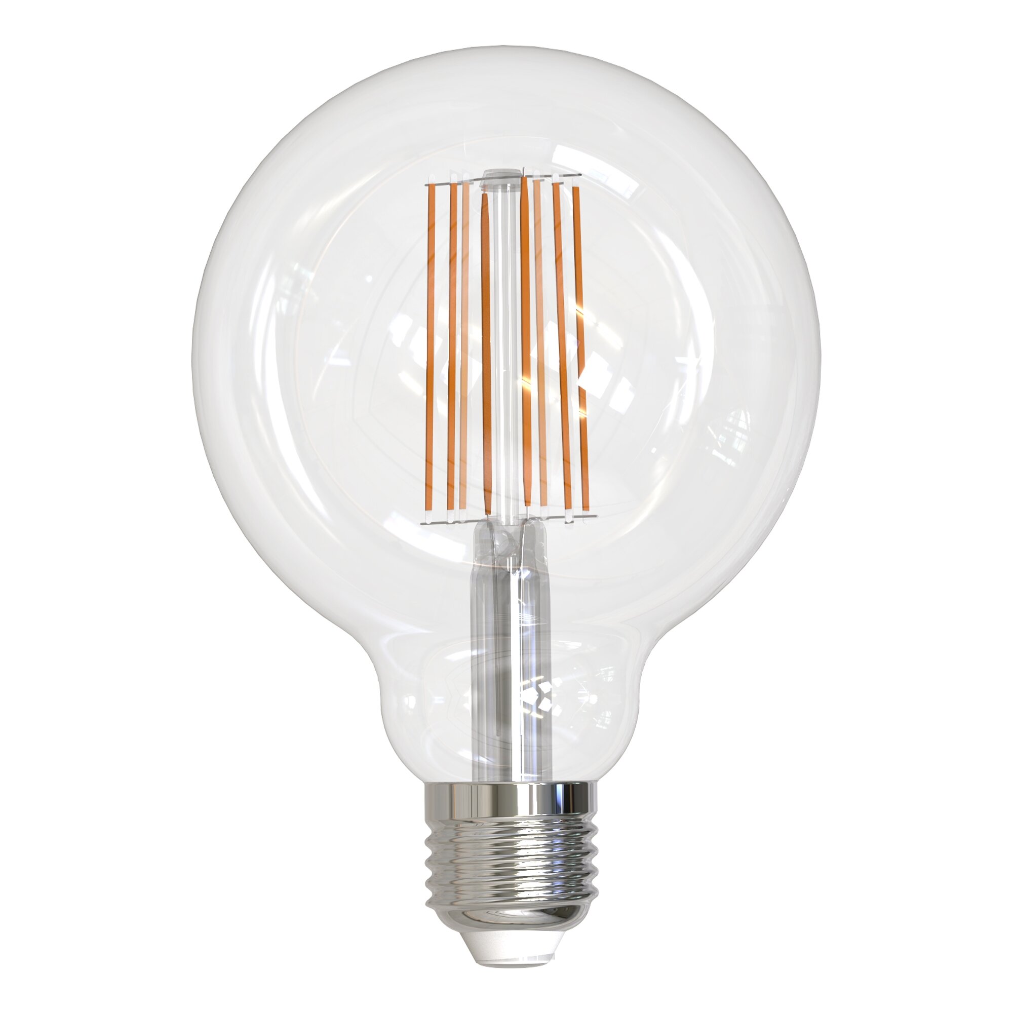 Лучшие цены. Лампа светодиодная филаментная LED-G95-15W/3000K/E27/CL PLS02WH из серии «SKY Globe» от производителя Uniel (Китай). Цвет товара серый. Используемые материалы: металл. Цоколь E27. Вид ламп: светодиодная. Изделие выполнено в форме «шар». Мощность одной лампы составляет 15 Вт. Напряжение 220-240 Вольт. Поток света 1500 Люмен. Заявленный производителем срок работы 30000 часов. Расширенная гарантия на товар 2,5 года. Высота 136 мм. Диаметр 95 мм. Вес товара 0.09 кг. Комплектация: Лампа светодиодная филаментная. Магазины в вашем городе.