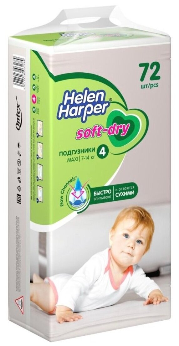 Подгузники (памперсы) Helen Harper Soft&Dry | Впитывающие подгузники для малышей | 4 размер | 7-14кг | 72 шт