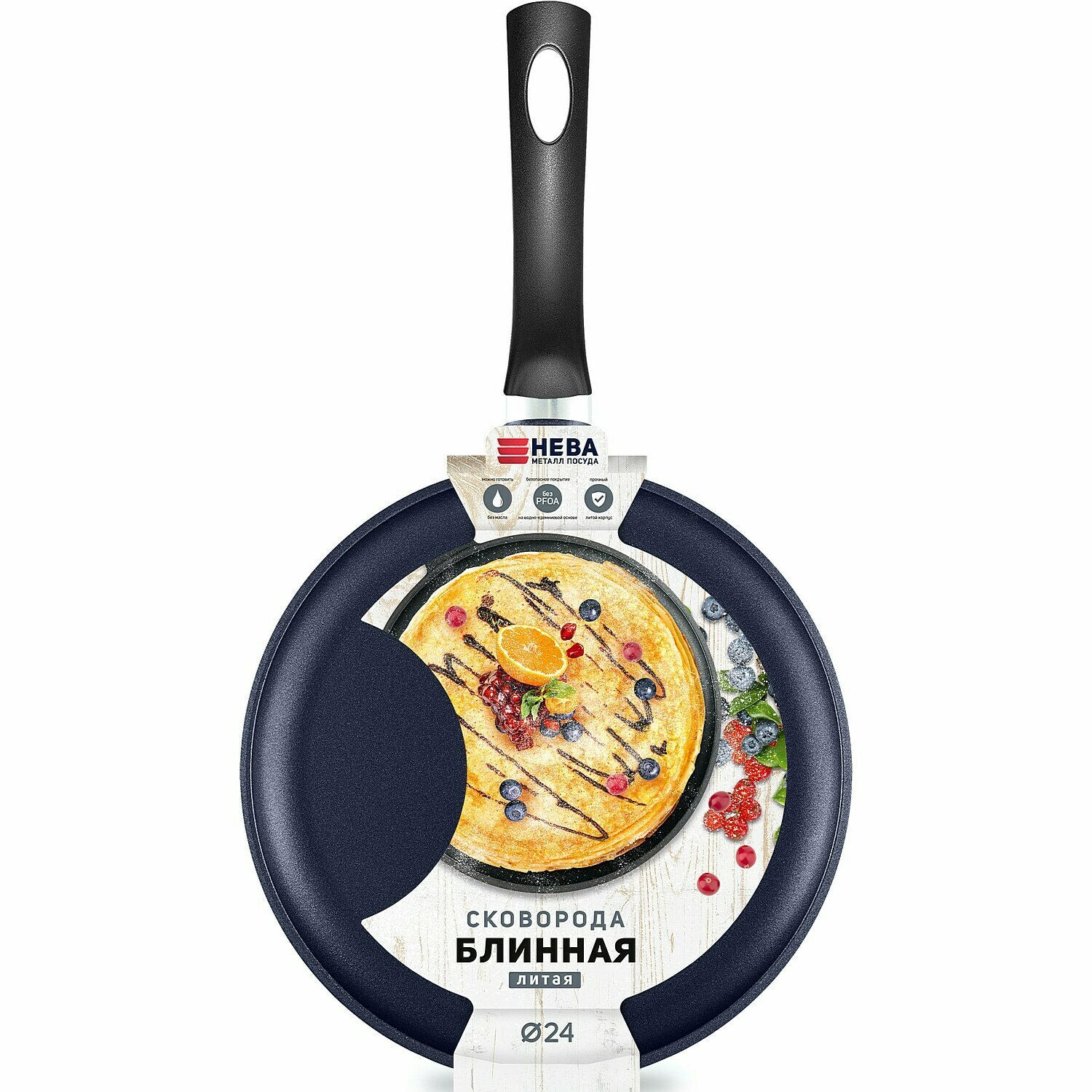 Сковорода блинная нева металл посуда 6224 24 см, черный