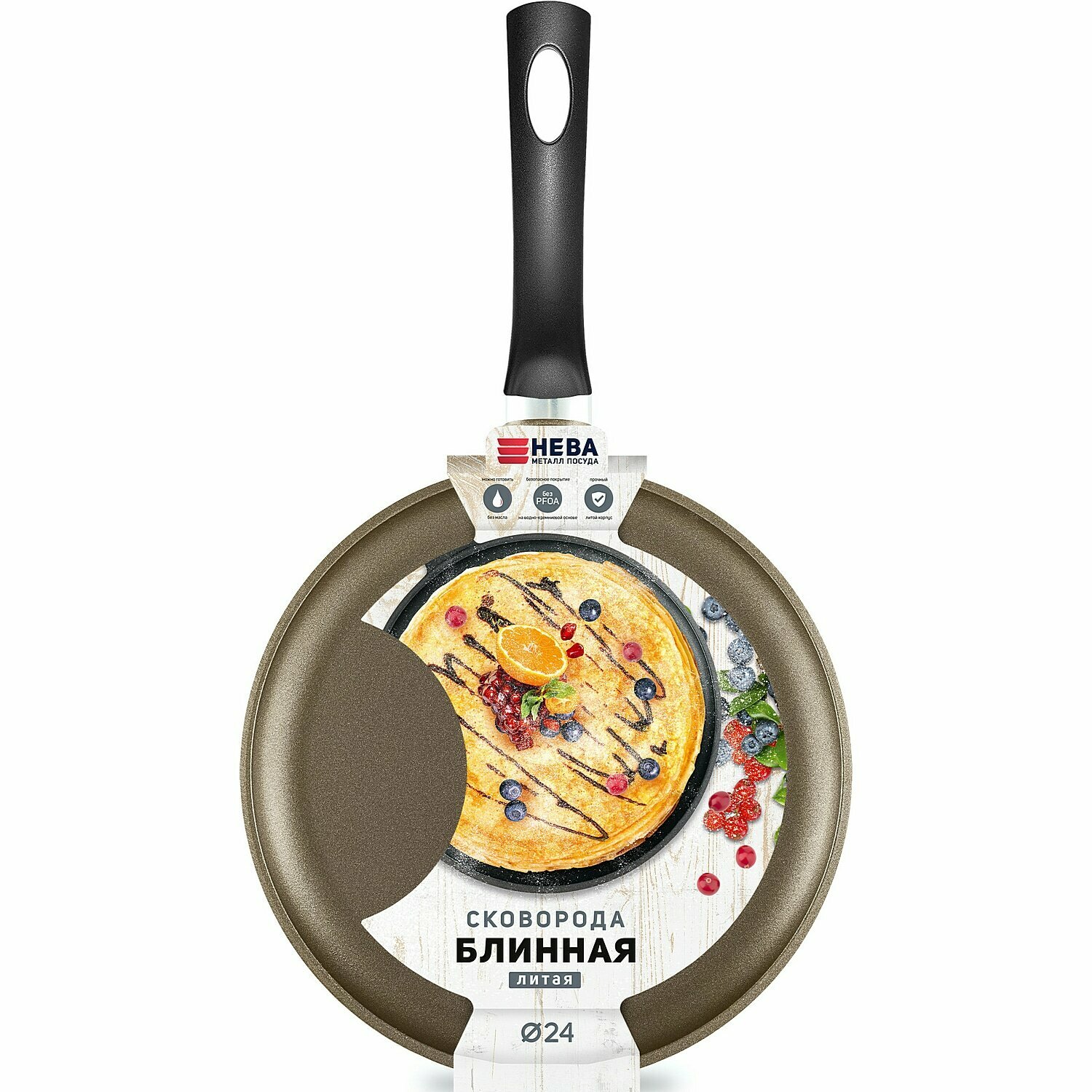 Сковорода блинная нева металл посуда 6224 24 см, черный