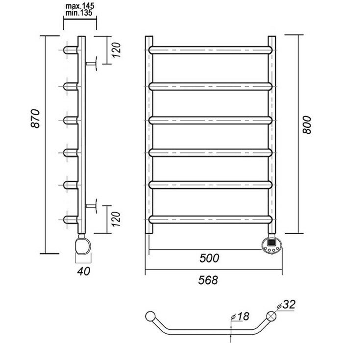 Полотенцесушитель Полотенцесушитель электрический Domoterm Лаура П6 500х800 ER справа