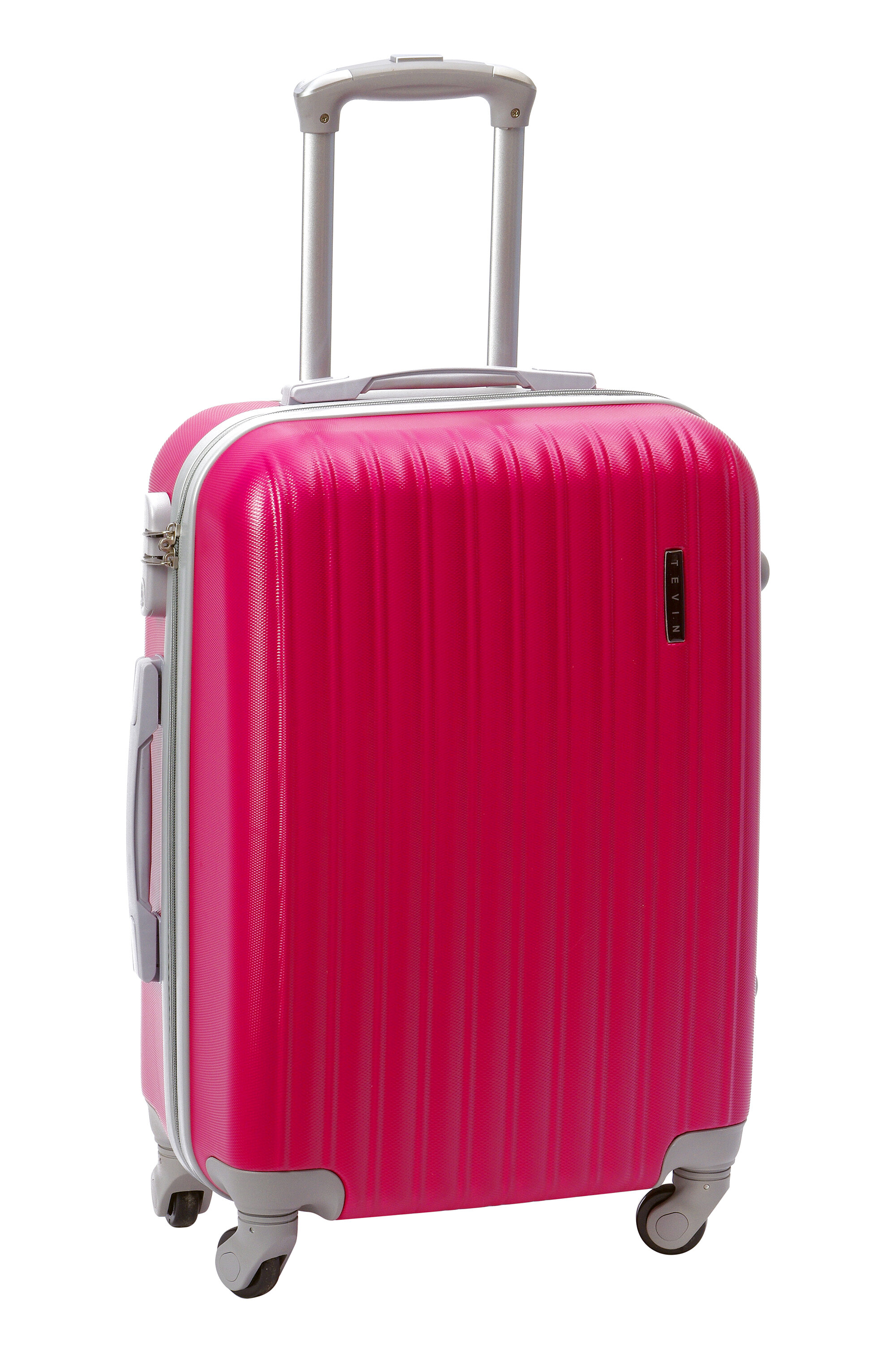 Чемоданы Чемодан на колесиках дорожный ручная кладь в самолет для девочки s TEVIN размер С компактный 55 см 37 л 2.5 кг прочный abs пластик Розовый яркий