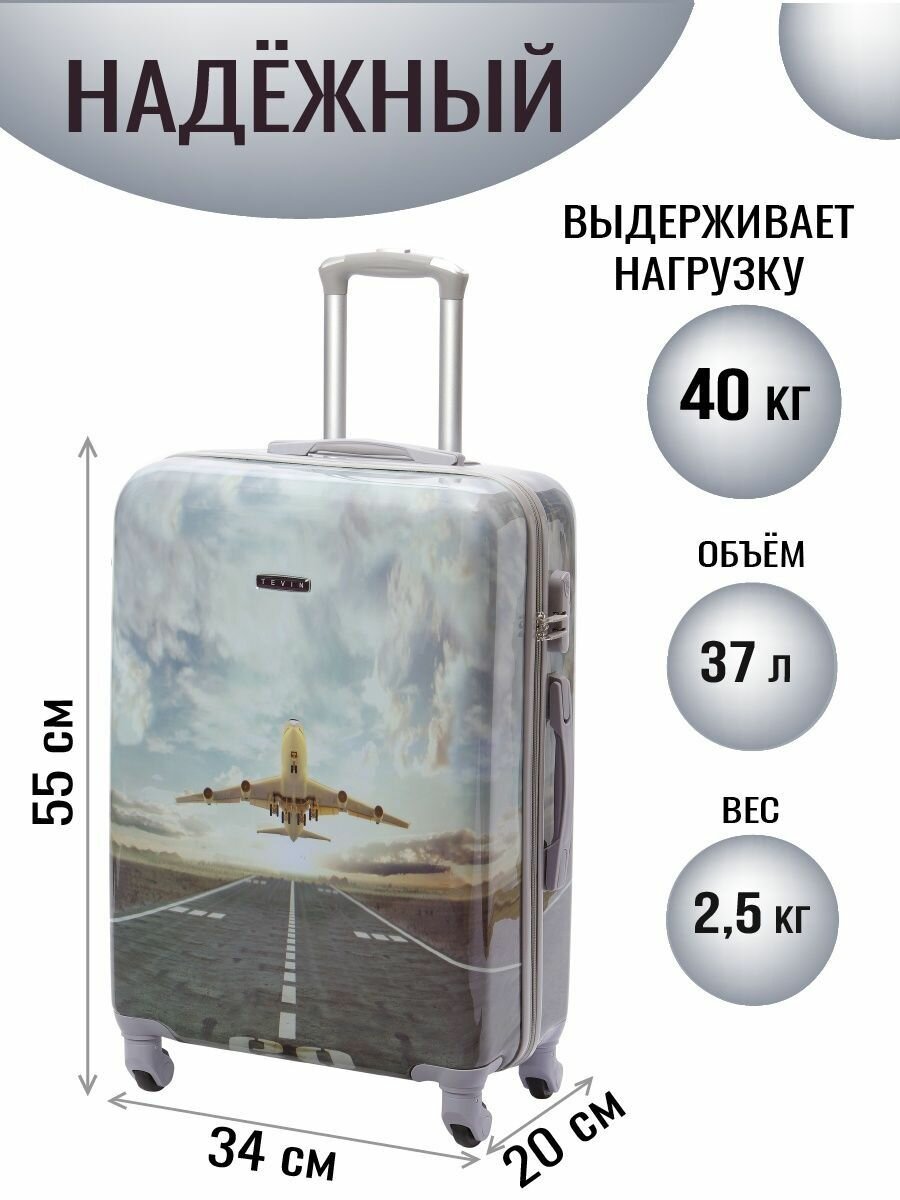 Чемоданы Чемодан на колесах дорожный ручная кладь в самолет s TEVIN размер С компактный 55 см ручной 37 л cabin 21" легкий и прочный поликарбонат с рисунком