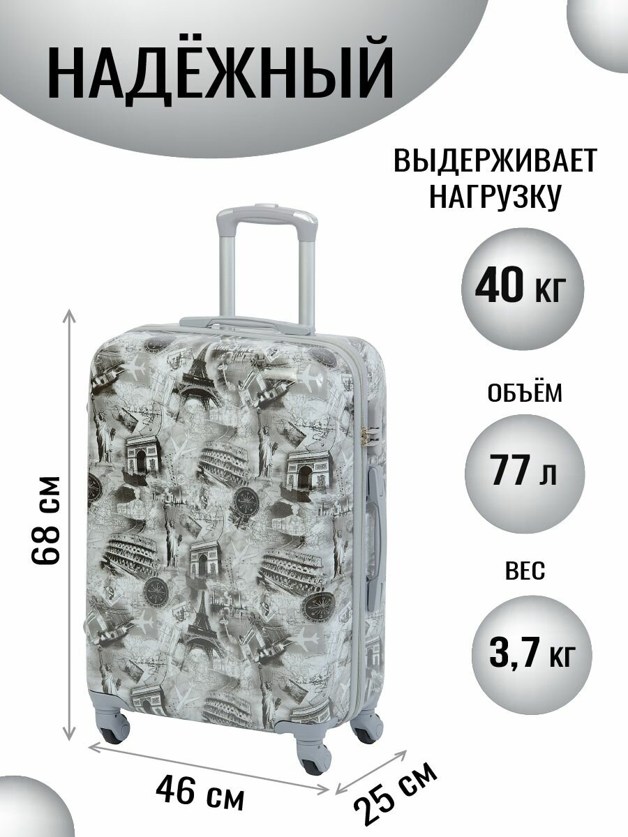 Чемоданы Чемодан на колесах дорожный средний багаж на двоих для путешествий m+ Тевин размер М+ 68 см 77 л легкий 3.7 кг прочный поликарбонат с рисунком
