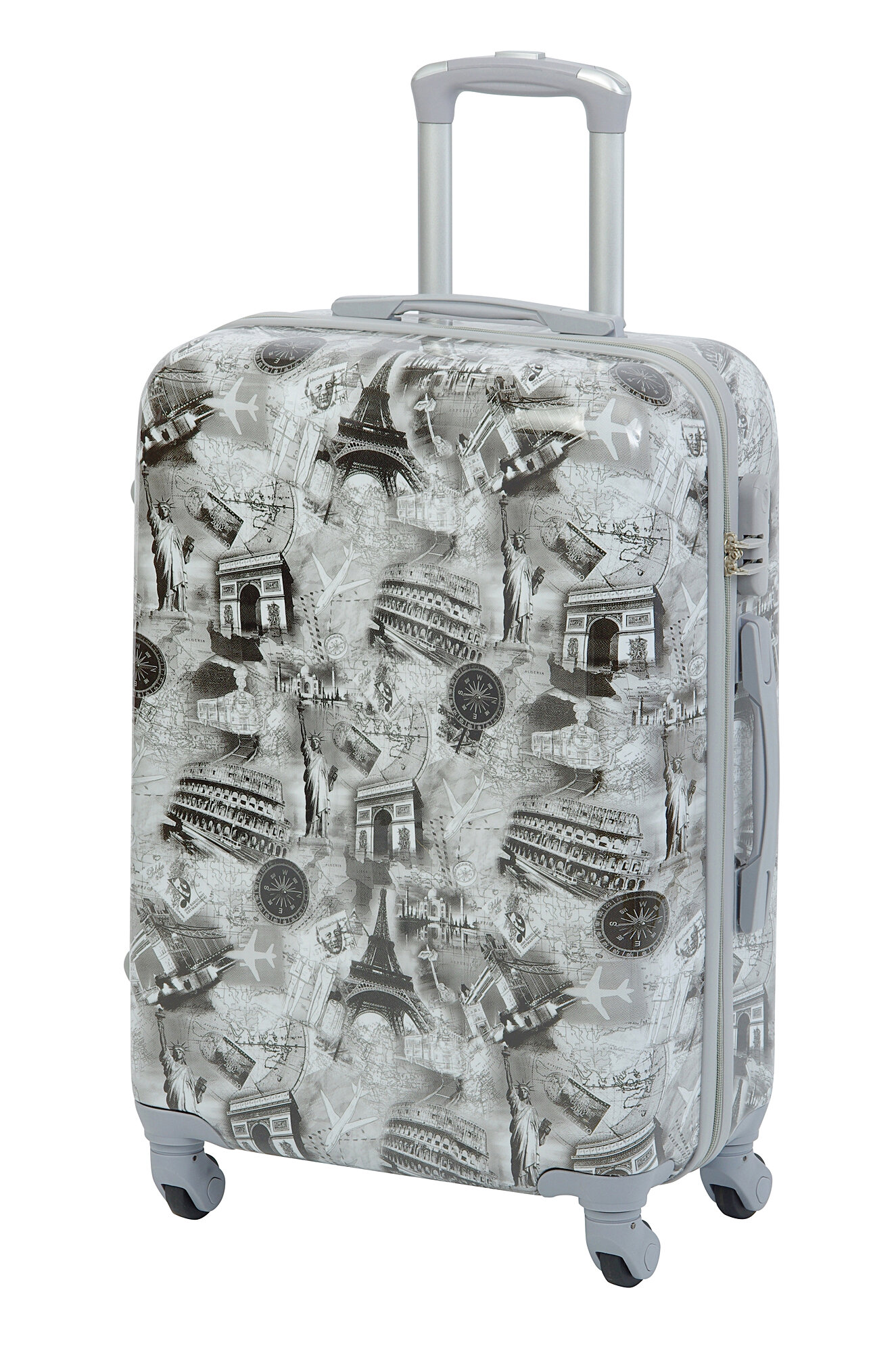 Чемодан на колесах дорожный средний багаж для путешествий s+ TEVIN размер С+ 60 см 52 л небольшой и легкий 2.6 кг прочный поликарбонат с изображением