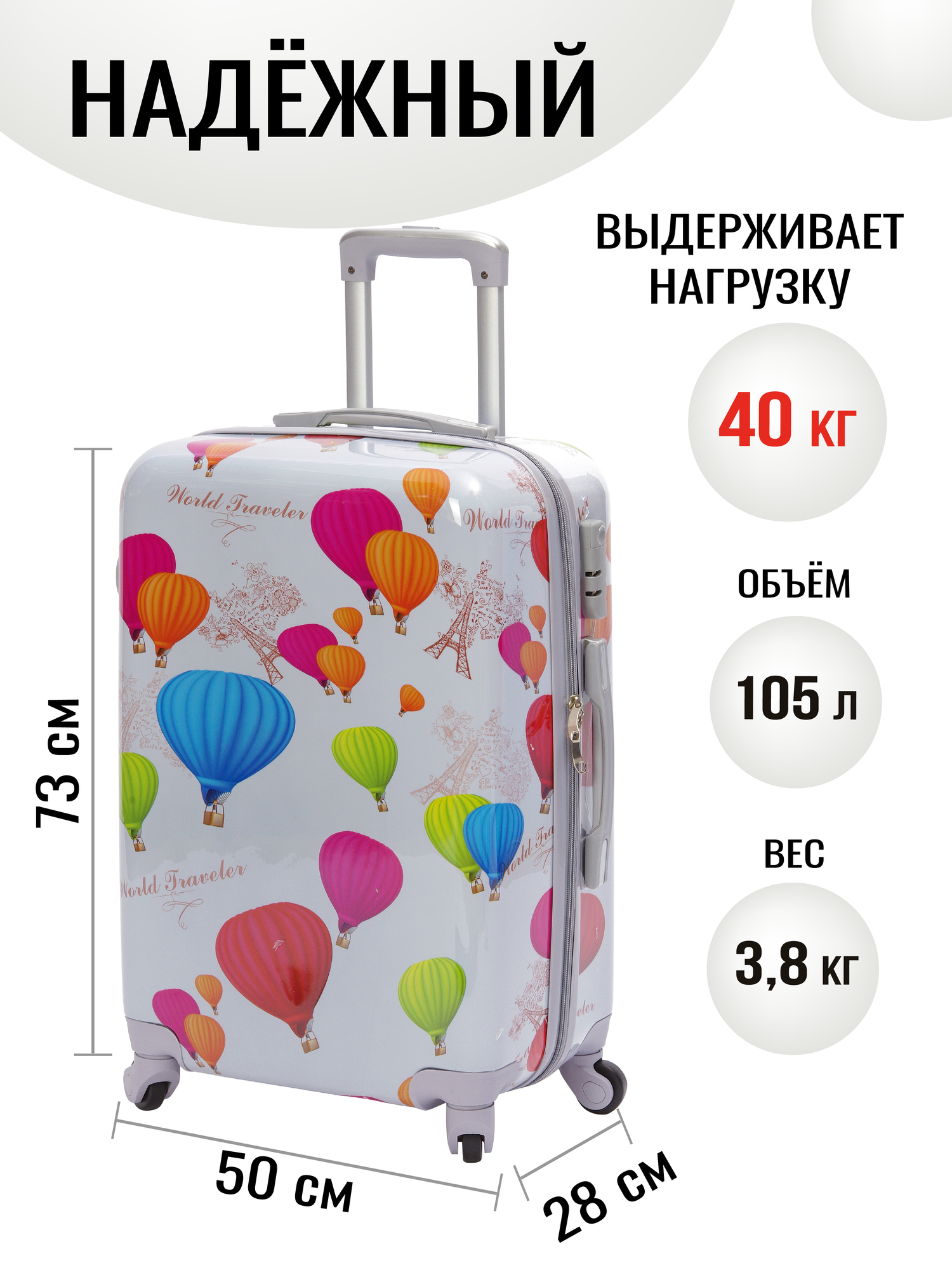 Чемоданы Чемодан на колесах дорожный большой семейный багаж для путешествий детский l Тевин размер Л 73 см 105 л легкий 3.8 кг прочный поликарбонат с рисунком