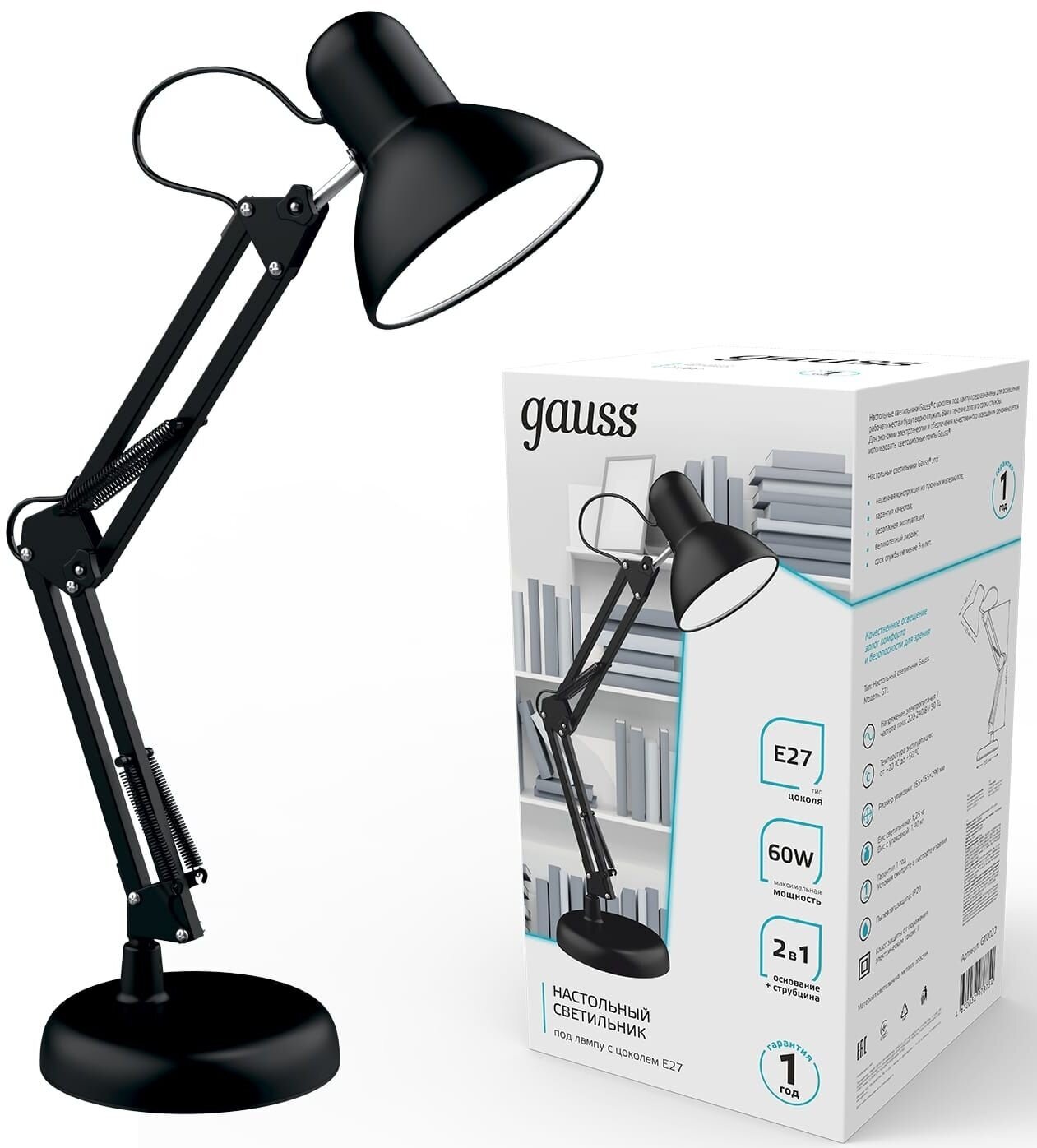 Настольная лампа GAUSS GTL002 60W 220-240V E27 черный струбцина и основание 1/12