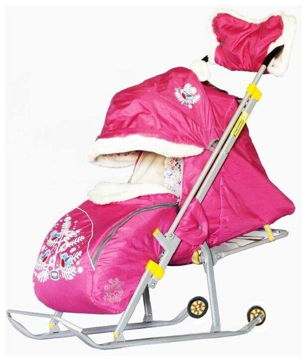 Санки-коляска Nika Ника-Детям 6 НД6, принт снегири на ветке (розовый)