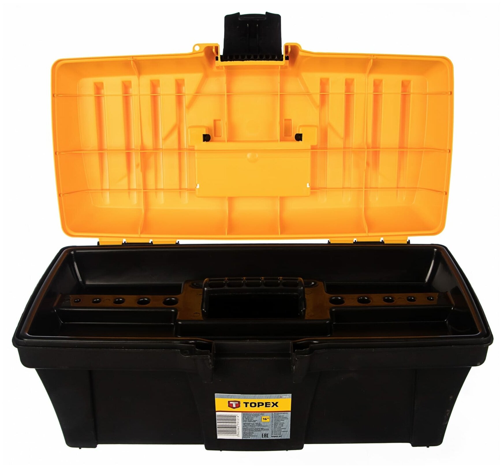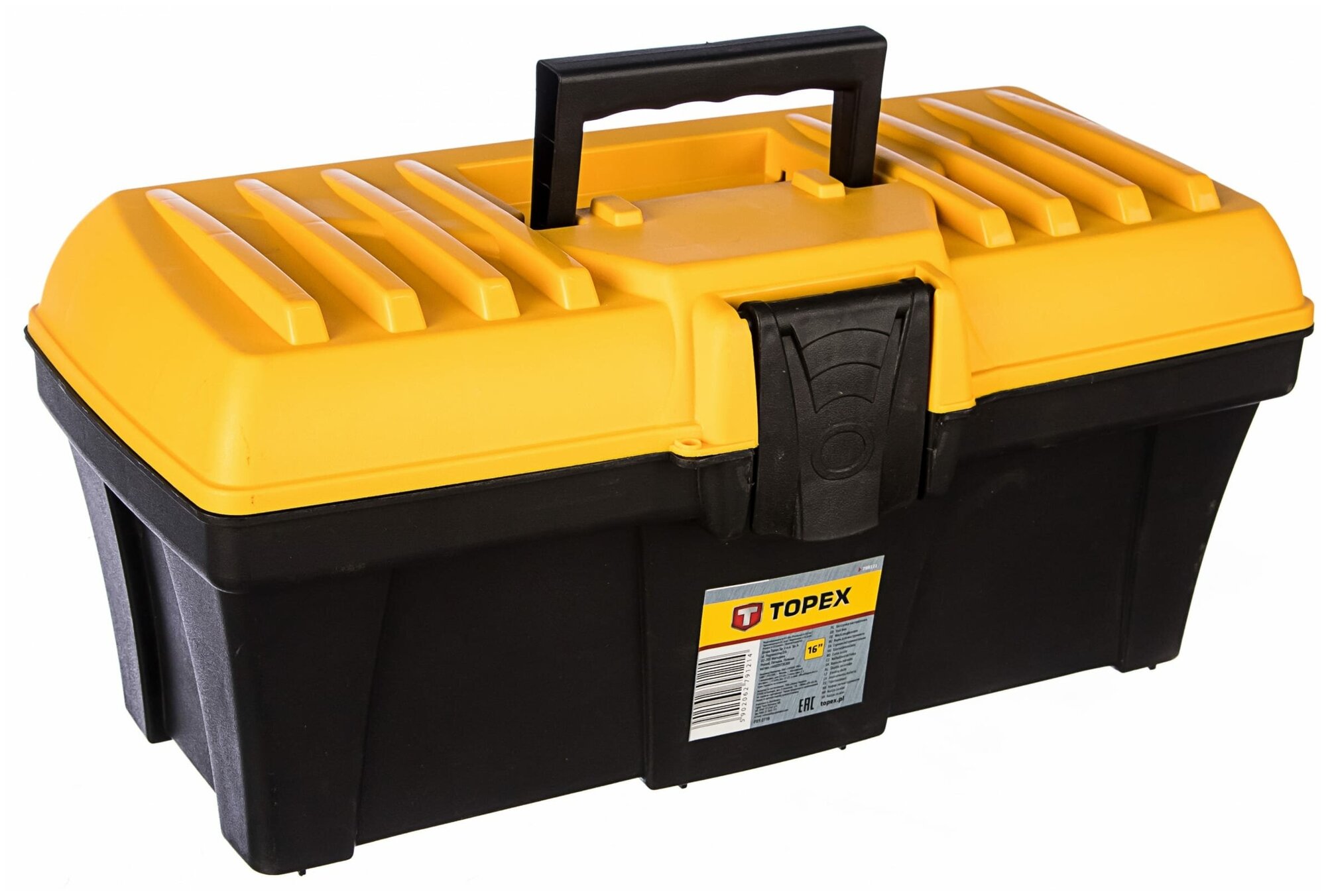 Лучшие цены. TOPEX Ящик для инструмента, пластмассовая рукоятка, пластмассовые защелки 79R121. Bosch Professional: нет. На колесах: нет. Металлическая ручка: нет. Ударопрочный корпус: нет. С выдвижными секциями: нет. С выдвижными полками: нет. С лотками: да. Габариты без упаковки: 380х170х170. Вес нетто: 0.600. Размер: 16.000. Высота: 170.000. Ширина: 170.000. Длина: 380.000. Класс товара: Бытовой. Назначение: для ручного инструмента. Форм-фактор: ящик (кейс). Материал: пластик. Цвет: черный/желтый. Магазины в вашем городе.